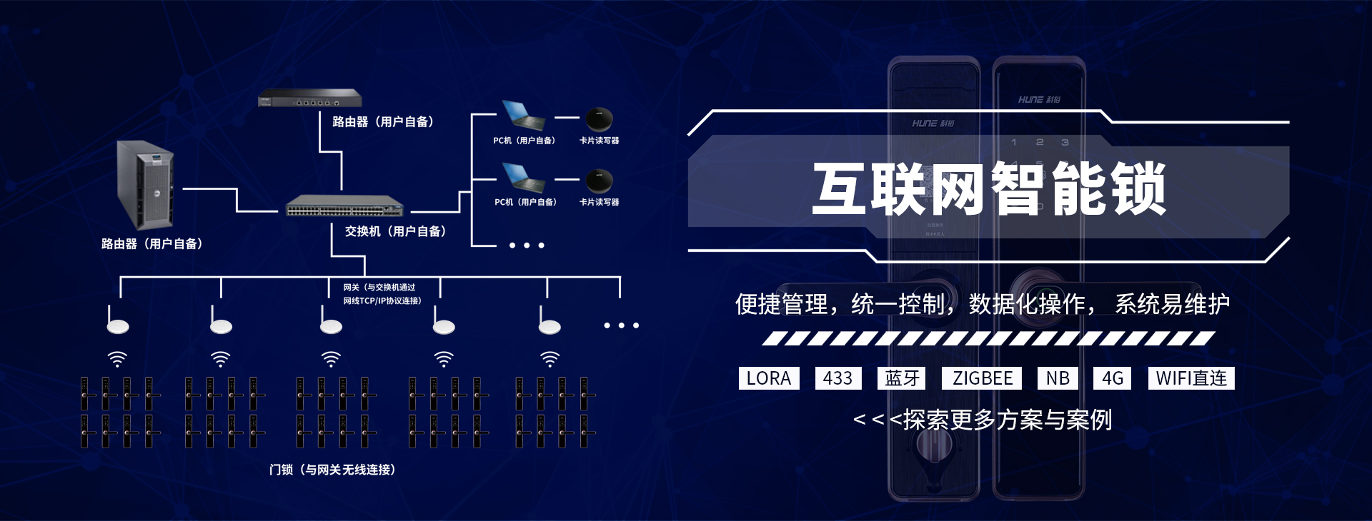 - 在數(shù)字高速發(fā)展的趨勢(shì)下,科裕31年堅(jiān)持創(chuàng)新發(fā)展,運(yùn)用物聯(lián)網(wǎng)技術(shù)推出聯(lián)網(wǎng)智能門鎖系統(tǒng),支持、LoRa、4G、NB、藍(lán)牙、WIFI、433等多種智能鎖聯(lián)網(wǎng)方案,實(shí)現(xiàn)了從酒店鎖到指紋鎖,到人臉識(shí)別鎖,再到聯(lián)網(wǎng)智能鎖的飛躍,以及智慧園區(qū)、智慧酒店、智慧公寓、智慧家居等各個(gè)場(chǎng)景解決方案。